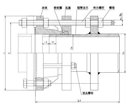 松套傳力接頭是在法蘭松套補償接頭的基礎(chǔ)上增設(shè)法蘭短管及傳力螺桿而成,次類型的補償接頭與松套補償接頭和松套限位補償接頭不同的是它的補償量是指在安裝及拆卸過程中的調(diào)節(jié)量,一旦將所有的螺母擰緊,它是剛性連接的,可以傳遞軸心力,從而保護閥門、泵等設(shè)備。